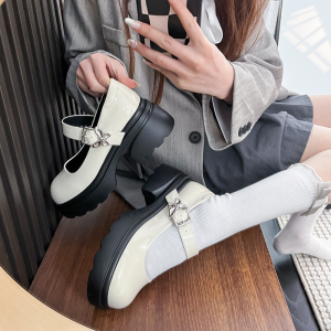 Popular elements: shallow mouth, sloping heel, thick heel, sponge heel, cross tie, buckle, waterproof platform, belt buckle Pattern: Solid color Inner material: microfiber Upper height: low cut Heel shape: Thick sole Sole technology: Adhesive shoes Wearing method: buckle Insole material: PU Style: Mary Jane shoes Shoe toe shape: round toe Shoe upper material: patent leather…