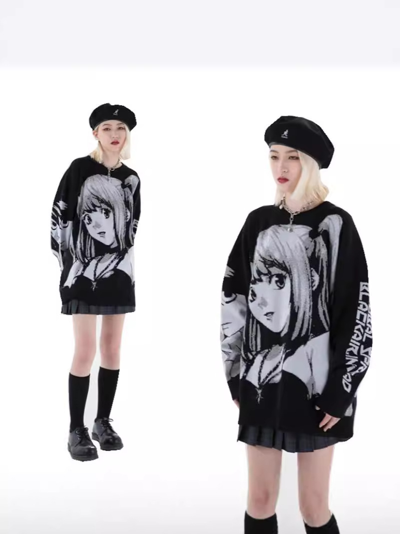 Black sweater high street style plus size European and American fashion hip-hop loose style beautiful girl pullover sweater Main fabric composition: polyester (polyester fiber) Main fabric component 2: polyester (polyester fiber) Pattern: Print