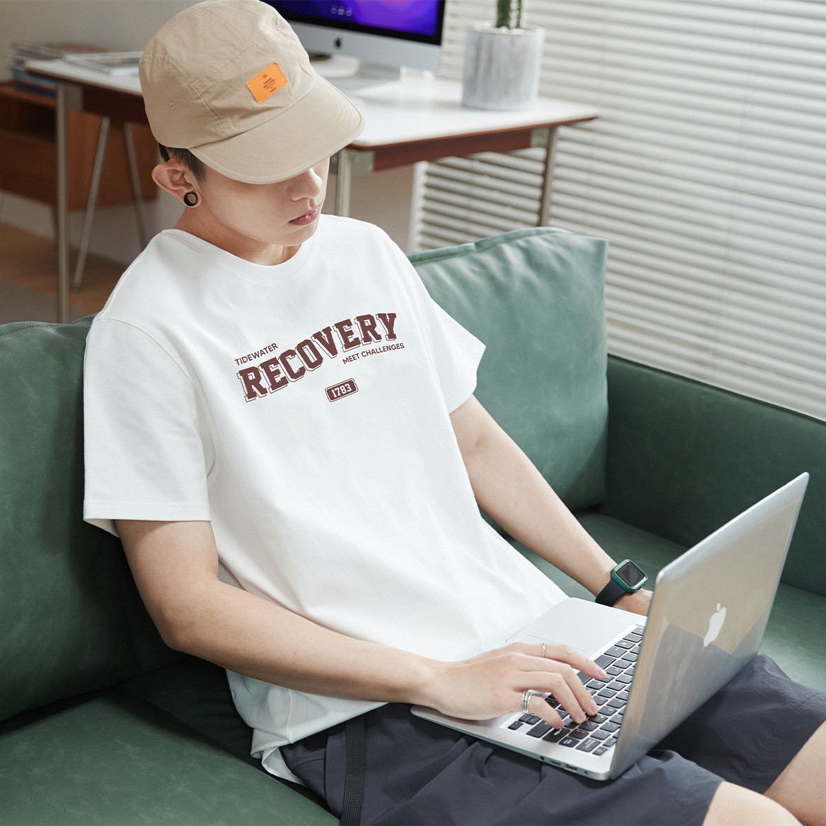 Short-sleeved men’s large chest text round neck short-sleeved T-shirt