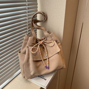 Large-capacity cross-border bag women’s trendy commuter shoulder bag fashionable solid color drawstring bag versatile ins handbag